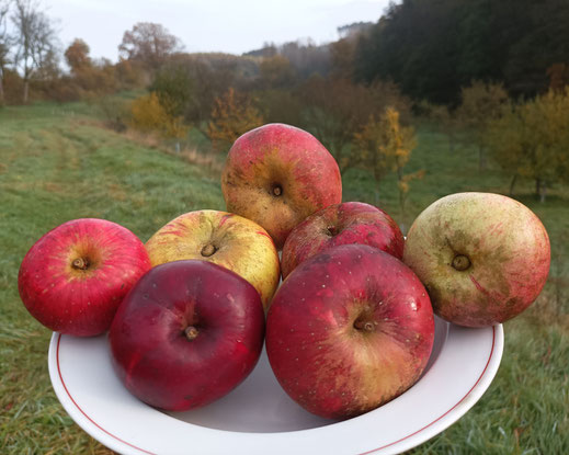 Wir bieten saisonal über die Marktschwärmerei Windeck eine "bunte" Mischung von genussreifen Streuobstwiesen-Äpfeln an: zum Direktverzehr, zur Weiterverarbeitung in der Küche oder als Geschmackstest alter Sorten, die es in Supermärkten nicht zu kaufen gibt - natürlich & ursprünglich. Optische Makel sind kennzeichnend dafür, dass die Äpfel völlig unbehandelt sind.