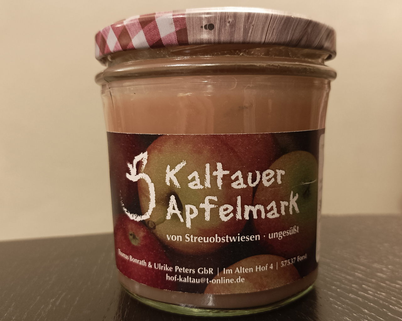 Wir bieten über die Marktschwärmerei Windeck Apfelmark von unseren Streuobstäpfeln im 300-Gramm-Pfandglas an - sortenrein und als Mischung. Der Geschmack ist angenehm mild-süßlich und fruchtig zugleich, die Konsistenz cremig. Die Verwendungsmöglich-keiten sind vielfältig: etwa als Snack oder als Topping zu frischen, warmen Pfannkuchen und knuspigen Reibekuchen. Es passt auch ideal zu Dampfnudeln oder als Füllung im Butterstreuselkuchen.
