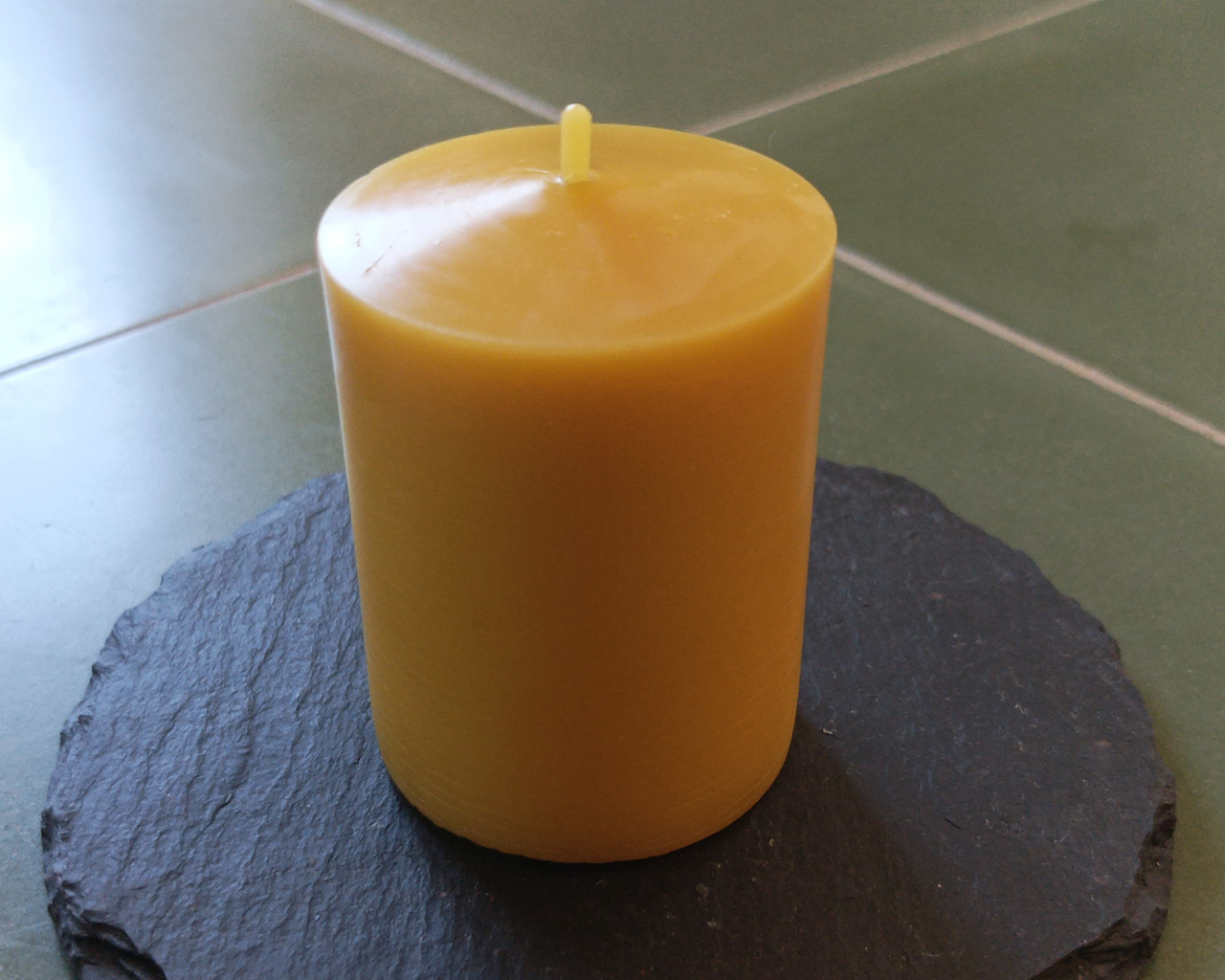 Natürliches Bienenwachs ist ein wertvolles Nebenprodukt unserer Imkerei. Um die Wabenhygiene und die Bienengesundheit zu fördern, werden den Stöcken regelmäßig die alten Waben entnommen, eingeschmolzen, das Wachs per Hitze sterilisiert und von Verschmutzungen gereinigt. Anschließend wird daraus für die Bienenvölker neue Waben und eben auch Kerzen gegossen.